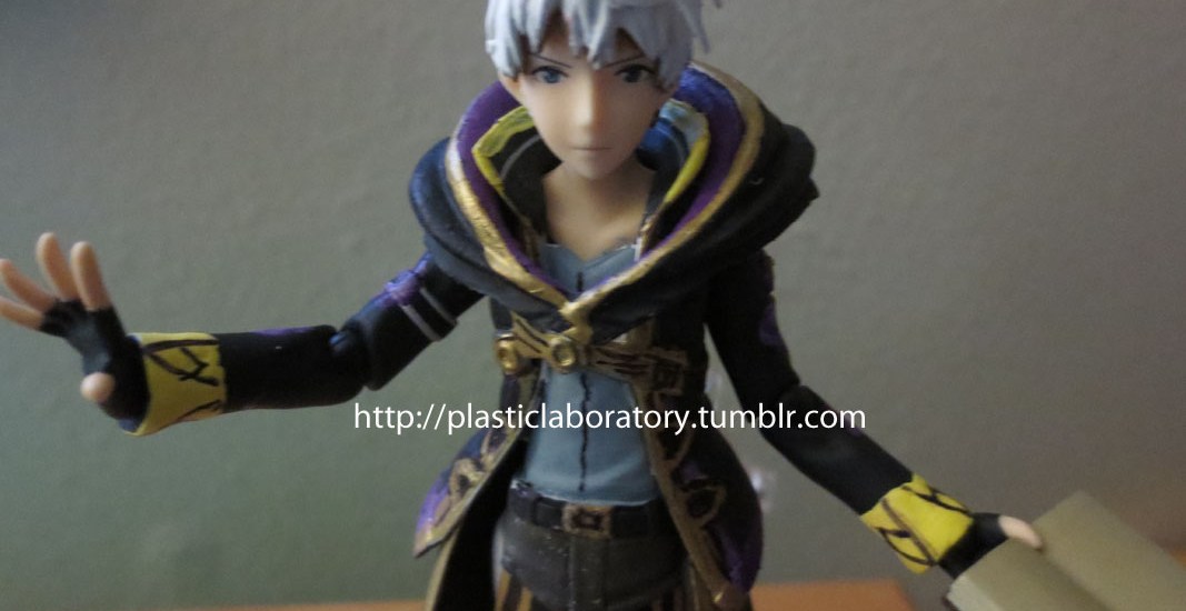 Custom figure I made of Robin/Avatar from Fire Emblem Awakening. ^_^ The spell book is removable from his hand. I actually wish Nintendo had an official Robin figma figure with swappable faces and hairstyles to match the in-game choices. He looks really cute next to the official figma figure of Lucina.